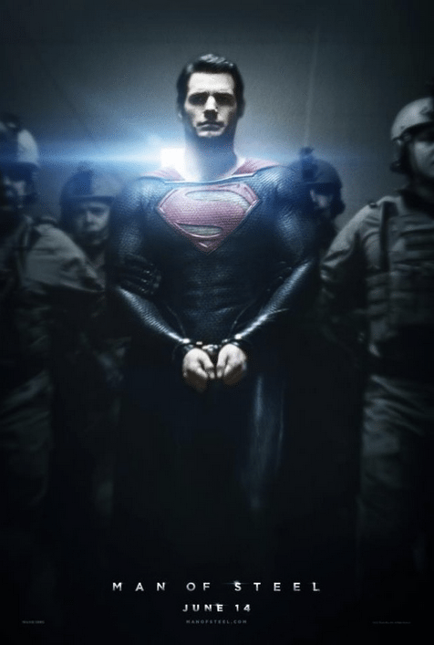 Within 24 hours of Star Trek’s new poster of Into Darkness (seen below), a new poster of the projected 2013 summer blockbuster Man of Steel comes out. It shows our favorite Kryptonian bound in irons and escorted by a SWAT team, I really hope those have some kryptonite laced in with them or they’ll just be fancy fist cuffs. There has been much speculation on what the deal is with the new Man of Steel movie. With so much news circulating in the nerd world, it seems like Zach Snyder’s new film has taken a back seat. But, a rewatch of the trailer for me has pumped me up for the movie all over again. I am loving the new age of superhero reboots. Gone are the cheesy neon colors and punches tagged with a “Kablam!”, we’re beginning to see a darker and hazier side of the comic universe, one that I’ve been anticipating for a long time. As for the new Into Darkness poster, it’s hard to garner anything from the new poster, other than the fact that Benedict Cumberbatch (known primarily for his eponymous role in Sherlock) will be causing a lot of mayhem and wreckage for the crew of the Enterprise. Both films are a ways off from being released but the excitement is building.