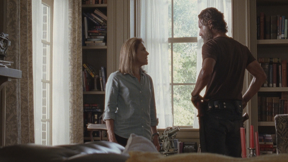 Michonne spent twenty minutes brushing her teeth and is shocked to see baby-faced Love Actually Rick. She has a good feeling about this place, even as Deanna shows up and marvels at their solidarity of all staying in one house. Later, during Michonne’s interview, she admits to Deanna that she’s ready for this, they’re all ready for this new opportunity.