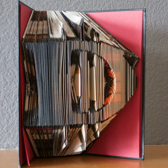 While the idea of this is interesting, the price may seem a bit high. This item is $120 before shipping, $130 with shipping in the U.S., and $145 including shipping to anywhere else in the world. It seems a bit steep, but prices for handmade items tend to be based off of the amount of time spent working on the item. All of the other folded art books that I noticed were significantly less than this, so if this seems a little out of reach, you can always see about customizing a different one.
